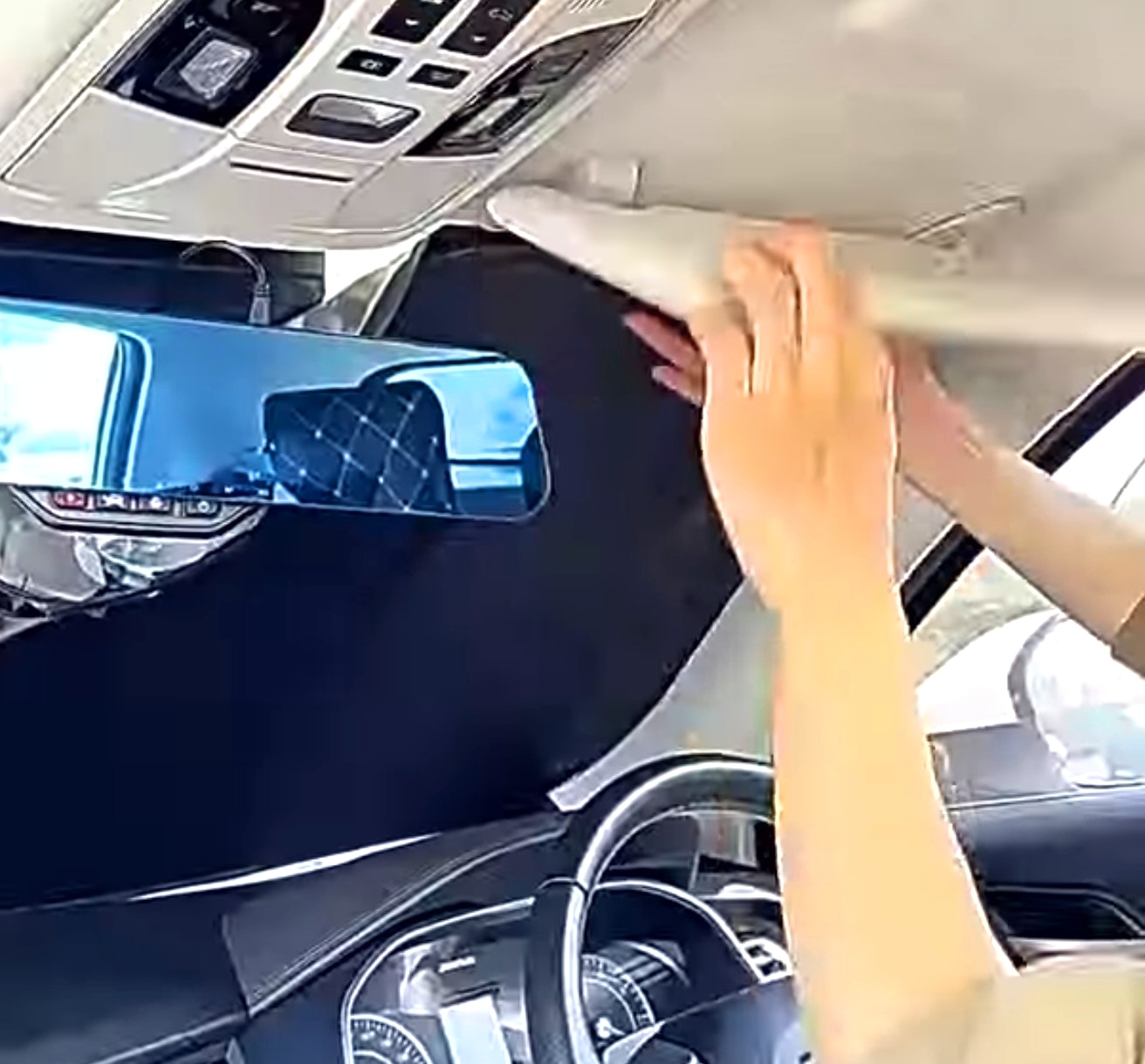 썬쉐이드는 뻥 뚫린 앞유리에 간단히 펼쳐서 끼우기만 하면 끝.