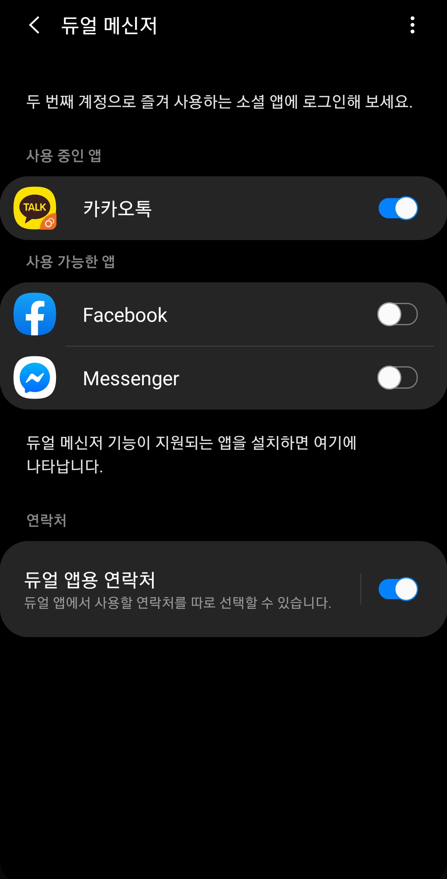 듀얼 앱용 연락처를 설정하시면