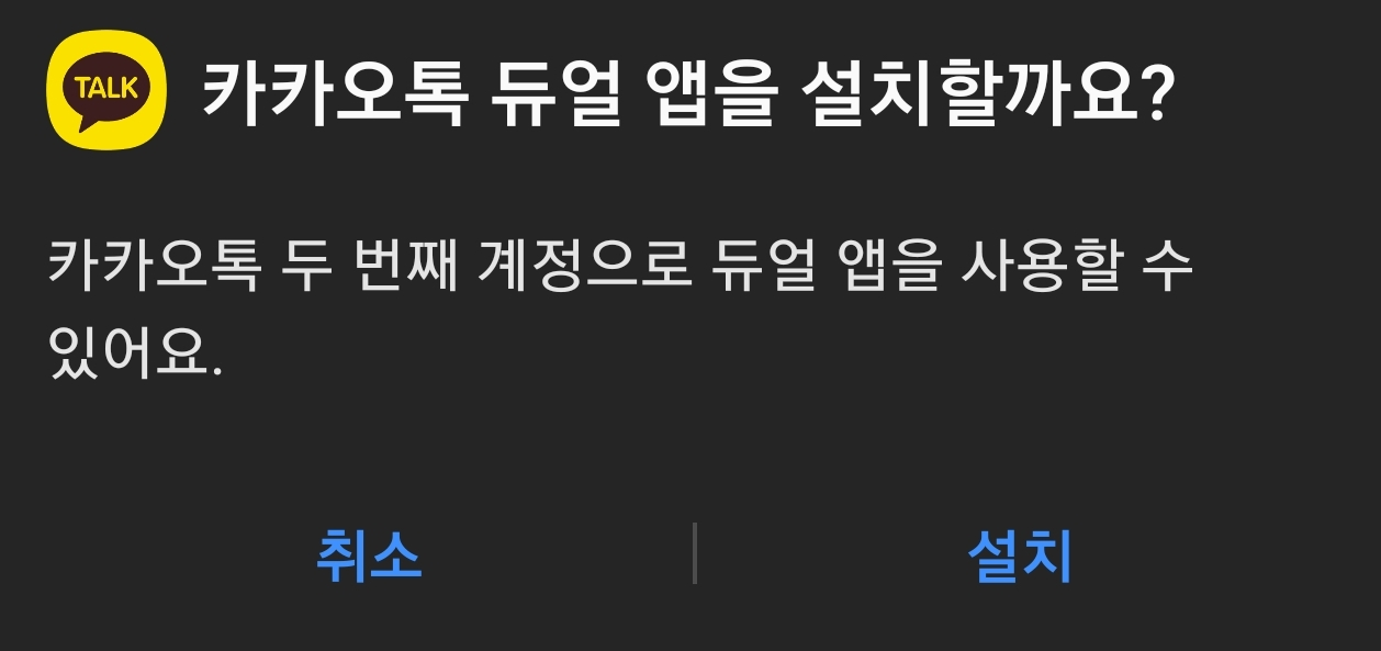 일반 카카오 앱과 듀얼 앱을 구분할 수 있습니다.