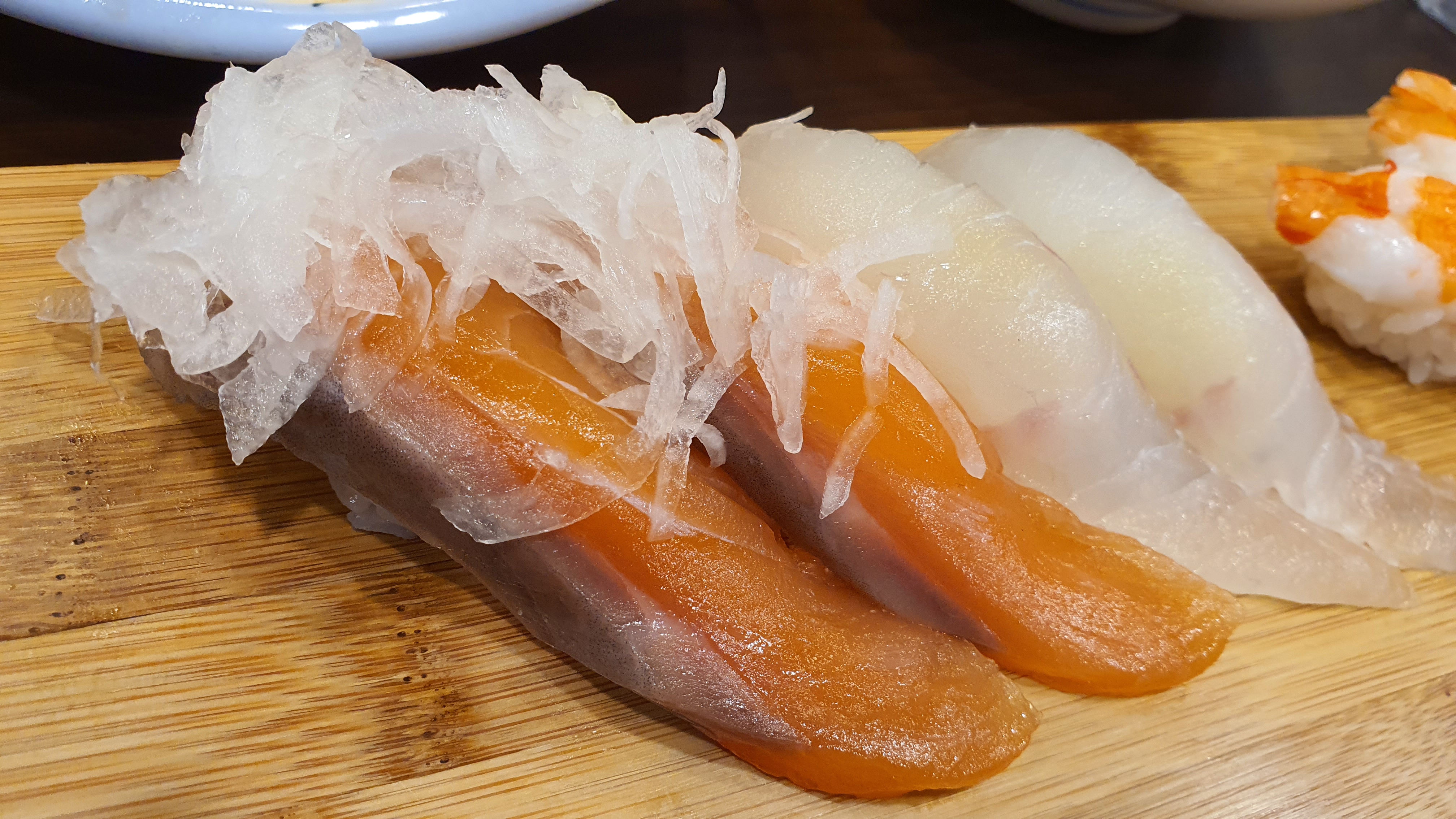 싱싱한 연어, 새우, 한치, 광어, 참치