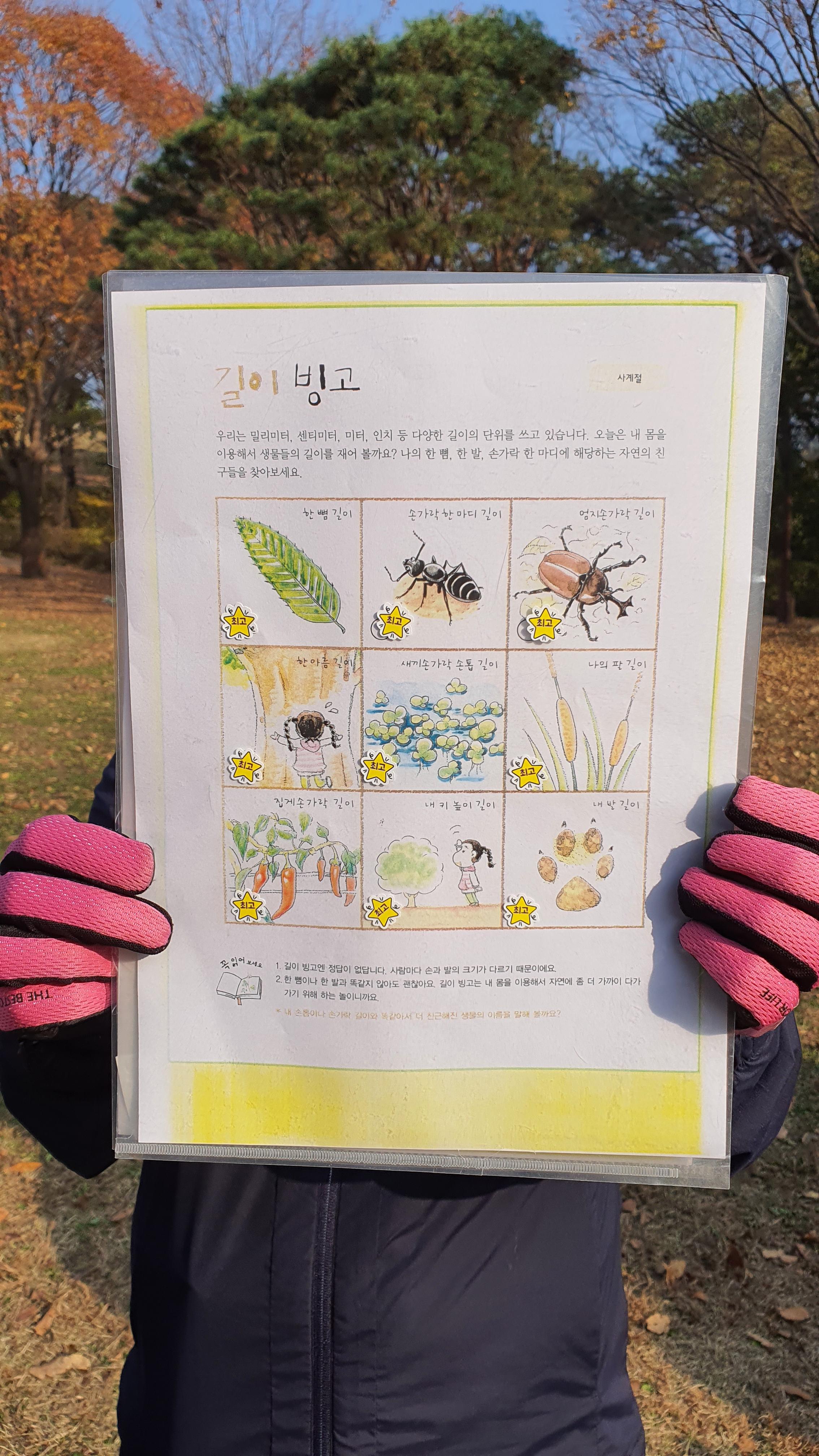 자연 속에서 길이가 같은 재료를 찾는 미션으로