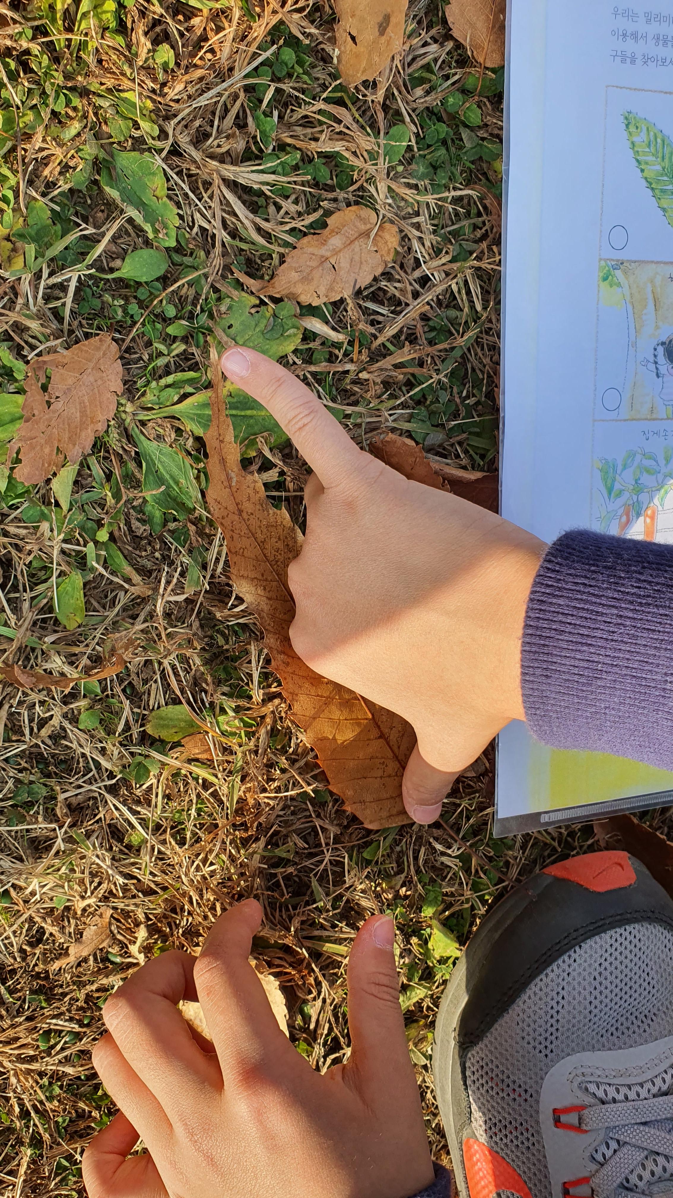 주위에 널린 다양한 나뭇잎을 주워