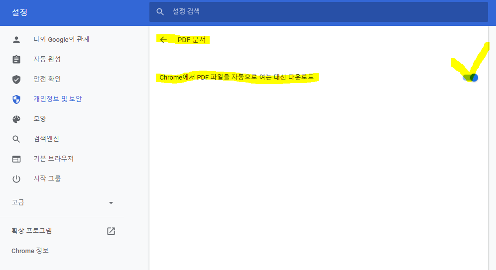PDF 문서를 자동으로 여는 대신 다운로드로 설정하여