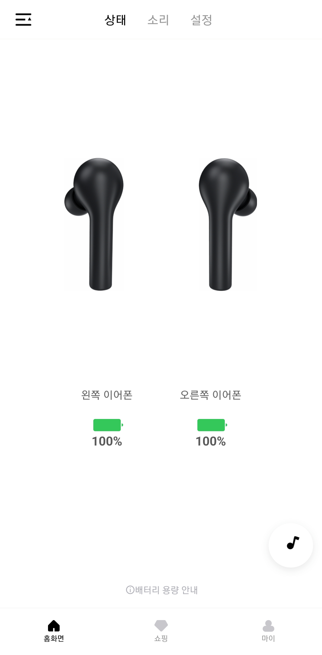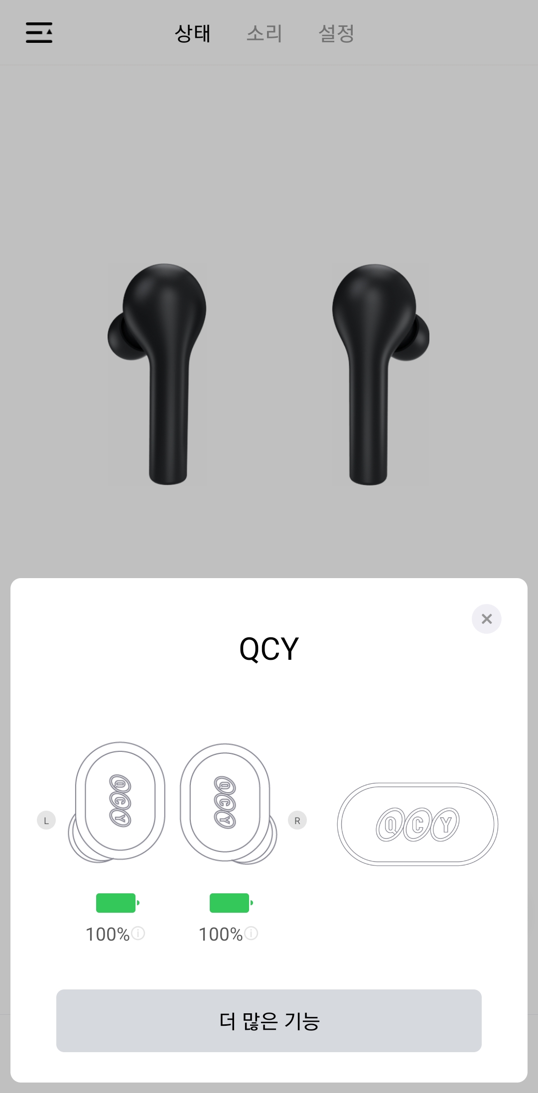 양쪽 각각의 이어폰 충전상태 확인이 가능하고